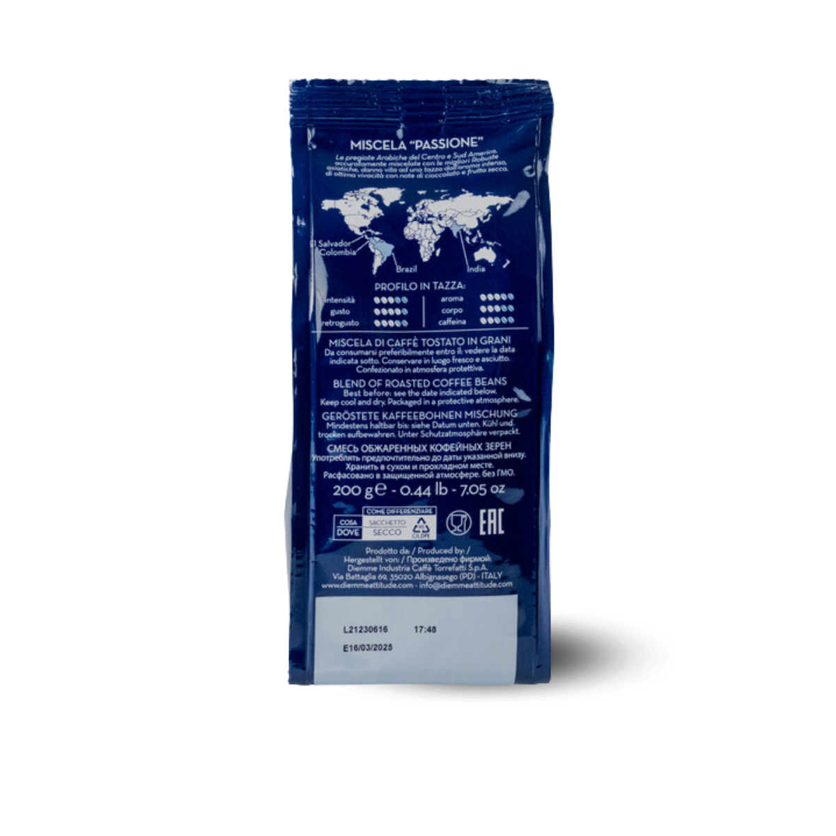 Café molido Diemme Passione, paquete de 200 gr